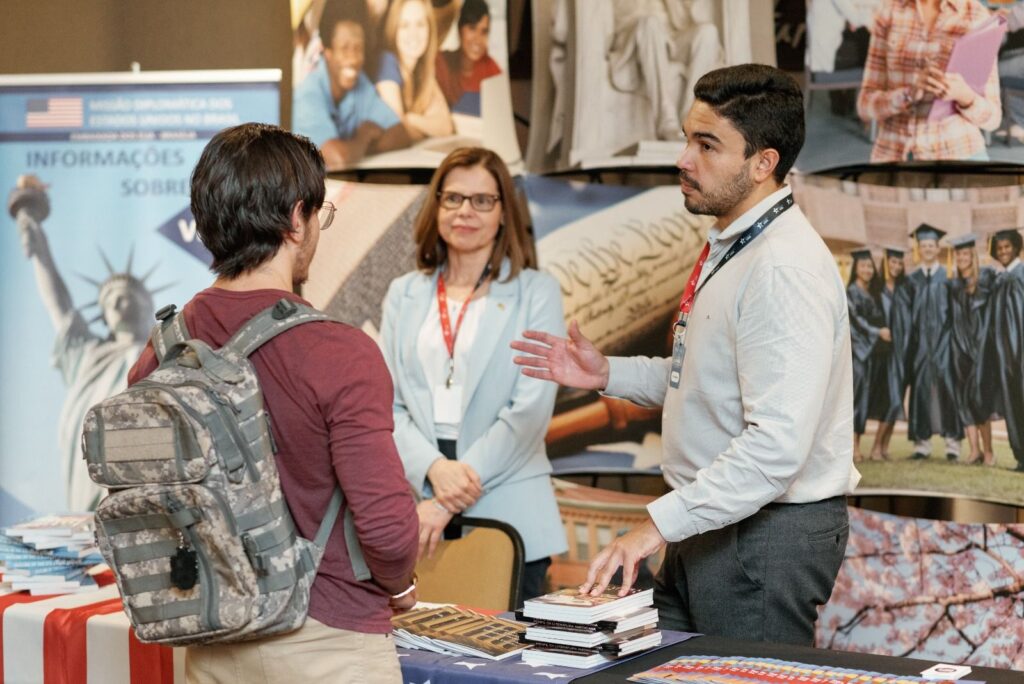 Com mais de 40 centros no Brasil, o EducationUSA oferece mentoria para estudantes interessados em estudar nos Estados Unidos, incluindo orientação sobre requisitos de admissão, bolsas de estudo, vistos etc.