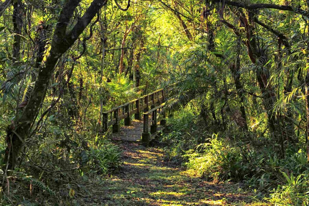 O percurso é plano, bem demarcado e acessível, ideal para famílias e visitantes de todas as idades que buscam uma experiência tranquila.