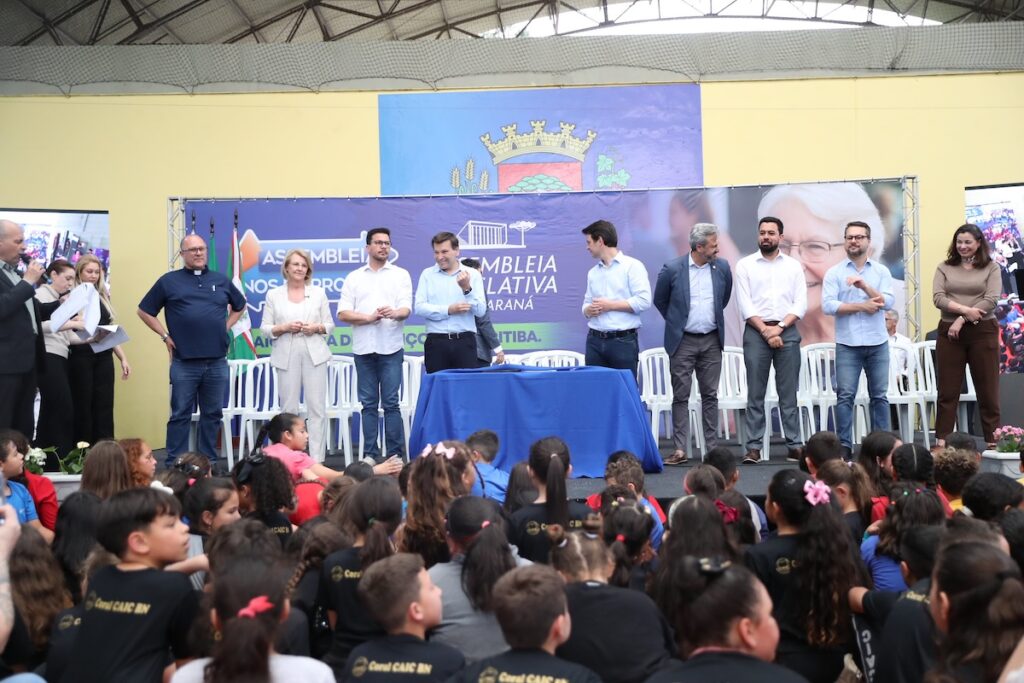 O anúncio foi feito nesta quarta-feira (29) durante a quinta edição do Assembleia nos Bairros, realizado no Ginásio de Esportes do Bairro Novo, quando o repasse foi oficializado, com assinatura do presidente da Assembleia Legislativa, Alexandre Curi, do prefeito de Curitiba, Eduardo Pimentel, do presidente da Câmara Municipal de Curitiba, vereador Tico Kuzma e da administradora regional do Bairro Novo, Veridiana Ribeiro.