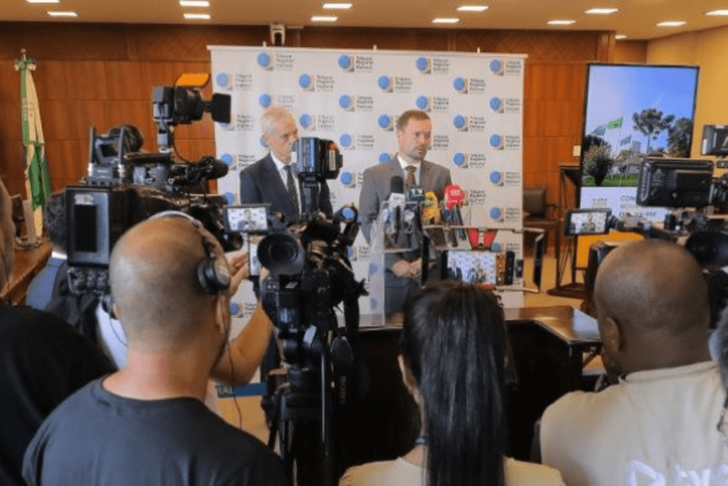 Luciano Carrasco Falavinha de Souza e Fernando Antonio Prazeres na coletiva da posse. Foto: Tribunal Regional Eleitoral do Paraná